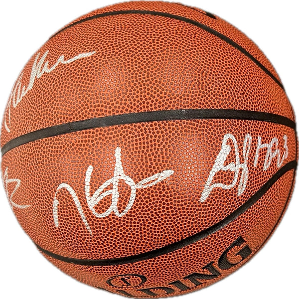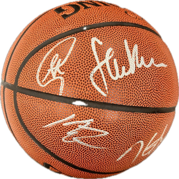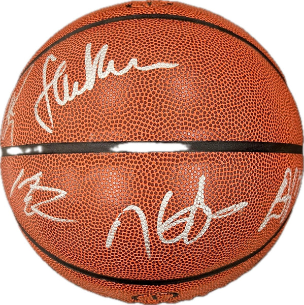Basketball signed by some of the greatest Golden State Warriors, Stephen Curry, Klay Thompson, Kevin Durant, Draymond Green and Steve Kerr. The autographs of on this basketball was authenticated by a team of experts at PSA/DNA so you can rest assured you are purchasing the real deal.