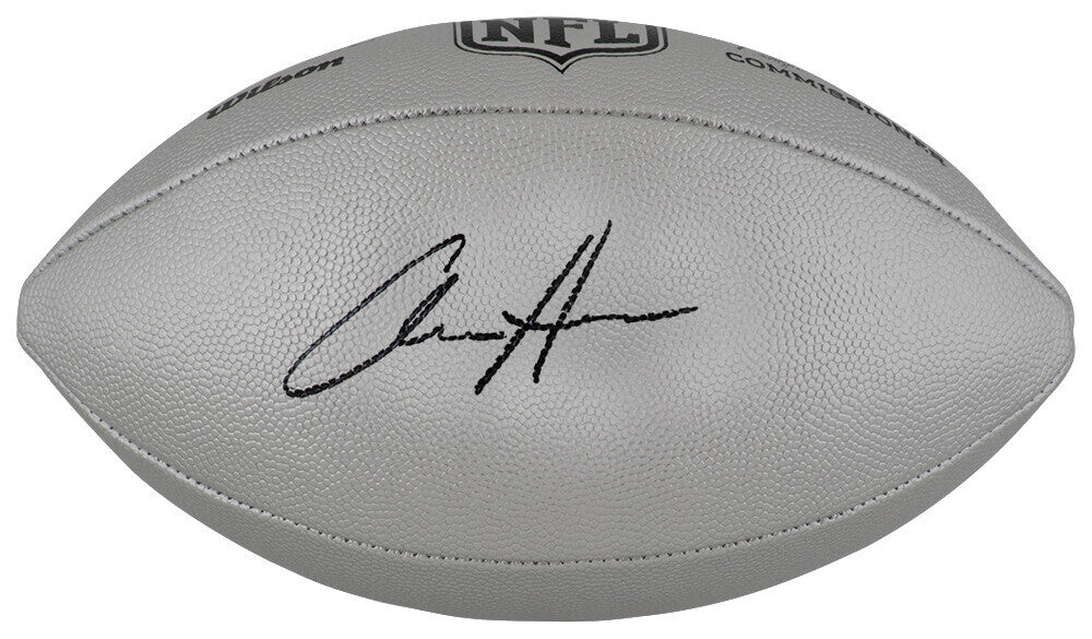 Aidan Hutchinson signed Wilson Duke silver metallic NFL full size replica football. Item comes with a Schwartz Sports Memorabilia tamper-proof numbered hologram and Certificate of Authenticity which can be verified online.