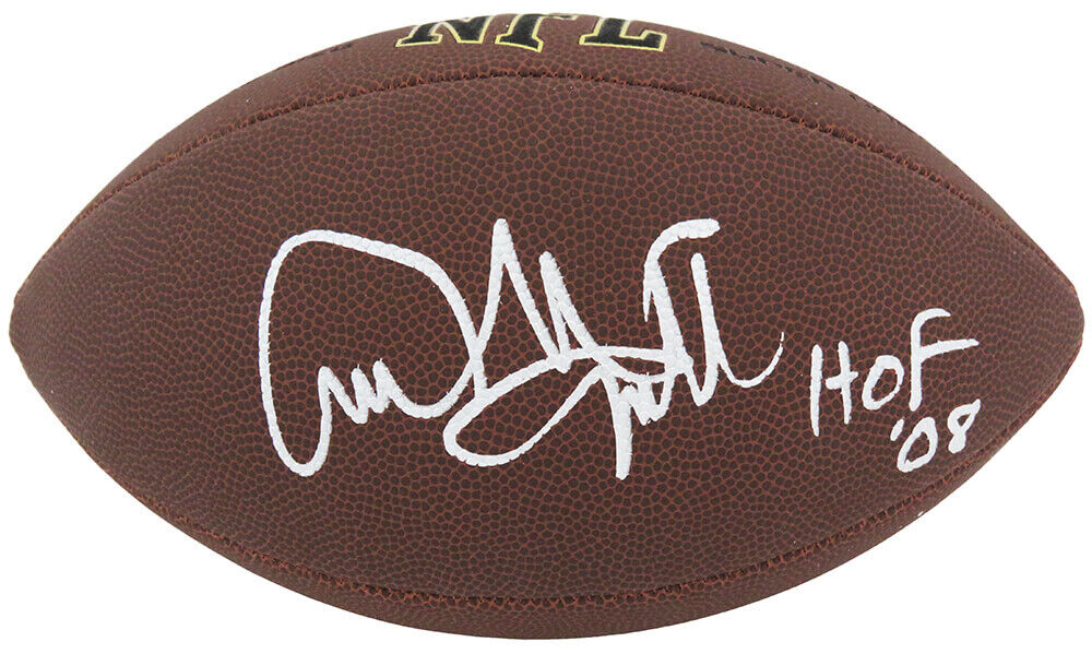 Andre Tippett signed Wilson Super Grip full size NFL football with 'HOF 08' inscription. Item comes with a Schwartz Sports Memorabilia tamper-proof numbered hologram and Certificate of Authenticity which can be verified online.