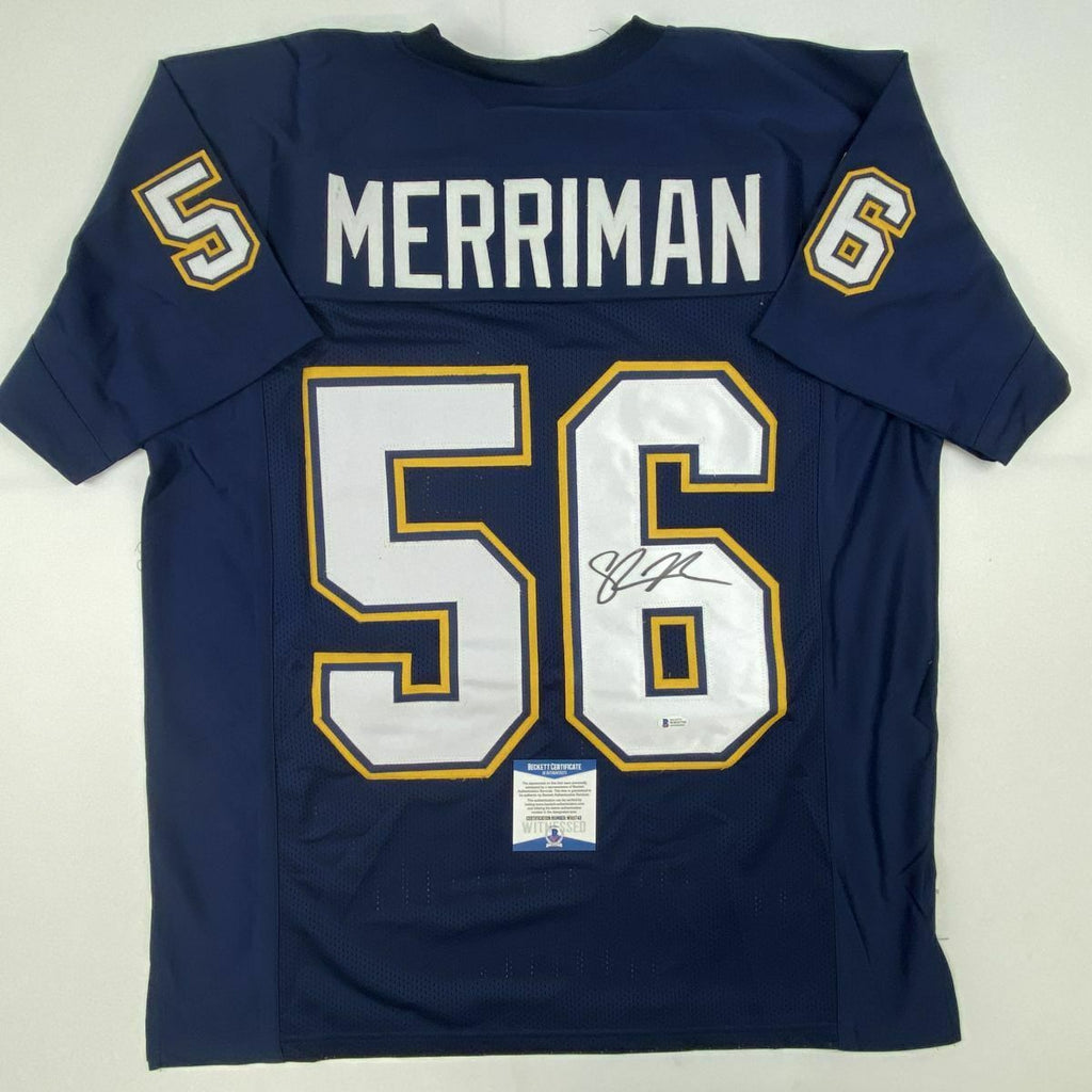 Autographed/Signed SHAWNE MERRIMAN San Diego Dark Blue Football Jersey BAS COA This is a custom jersey and was not manufactured by or in any manner associated with any professional sports league or manufacturer. This custom jersey carries no professional sports league designation. The item is intended to be an autographed collectible. Reference of team in the title is to allow the purchaser a point of association. The custom jersey displays the name, number and authenticated signature of the player. This item in no way is affiliated with or connected to any professional sports organization. The autograph, as always is guaranteed to be authentic and has been certified as authentic by a third-party, trusted authenticator. Size is XL unless otherwise noted.