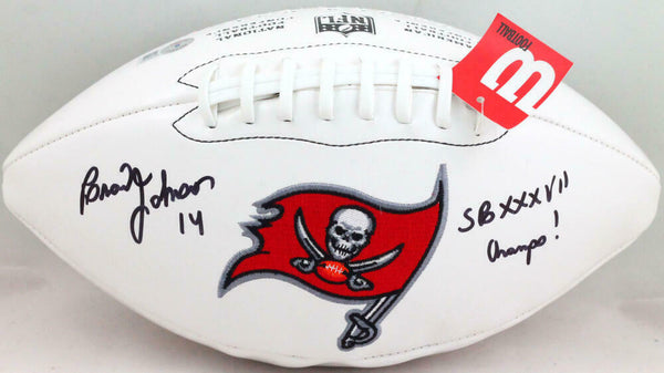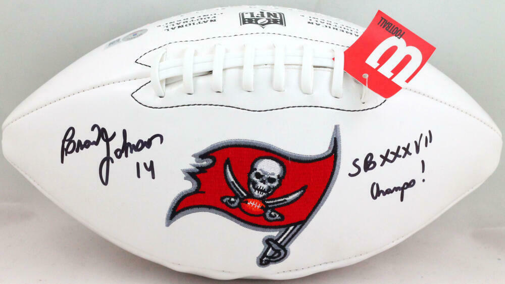 Brad Johnson Autographed Wilson Logo W/ Insc- Beckett *Black This is a Brad Johnson of the Tampa Bay Buccaneers hand autographed Wilson logo football inscribed with xxxvi champs. This item has a Beckett Authentication, which comes with a numbered and a matching Certificate of Authenticity. You can view this item on the Beckett Authentication website and it shows when and where the item was signed. It was signed either at a public autograph appearance or a private signing. This is a stock photo of the item. Although you may not receive this exact item, the item you receive is virtually identical, brand new, and in great shape. Jersey size is XL.