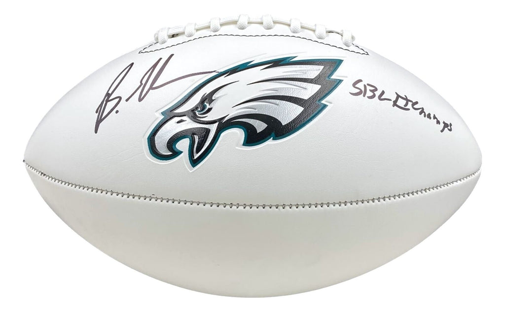 Featured is a Brandon Graham signed Philadelphia Eagles logo football, inscribed "SB LII Champs". This ball has been hand signed by Graham and comes with the Beckett hologram and certificate of authenticity. This ball would make a great addition to any sports memorabilia collection!. SPECIFICATIONS Autographed By: Brandon Graham Team: Philadelphia Eagles Sport: Football Authentication: Beckett Grading Services