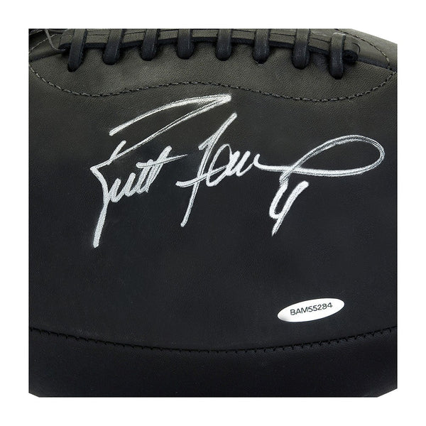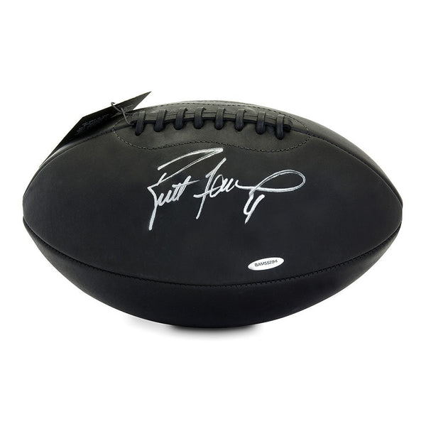 When Brett Favre was selected in the second round (33rd overall) in the 1991 NFL Draft, the hopes were high but the expectations realistic for the talented quarterback out of Southern Mississippi. The Packers had a good QB in place in Don Majkowski, who led the NFL in passing yards with 4,318 just two seasons earlier. When Majkowski went down with an injury early in a game in the '92 season, Favre took the reins and led the way to a one-point win. He went on to start an NFL-record 297 consecutive games (321 including the playoffs). Favre captured three straight AP MVP Awards (1995-97), the only player in NFL history to accomplish that. He led Green Bay to a championship in Super Bowl XXXI. He's one of the greatest competitors of all time. This Black Onyx Pro Series football is made by Leather Head Sports. The vintage look of the football comes from quality craftsmanship developed by a small East Coast business. Favre has signed this Leather Head football in silver paint pen. His signature is deemed authentic by virtue of Upper Deck Authenticated's Five-Step Process.