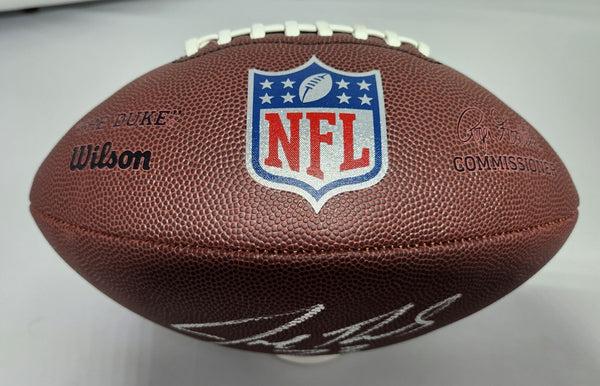 Wilson "THE DUKE REPLICE NFL Football hand signed by Cleveland Browns 2023 Hall of Famer JOE THOMAS. The signature is in Silver Paint Pen. This item was signed at a private signing with us and would make a great addition to any Thomas, Browns or Badgers collection! . This item is guaranteed to be 100% authentic and will include a COA from JSA authentication.