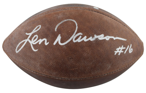 This Autographed Official Wilson "The Duke" Nfl Football has been Personally Signed by Len Dawson of the Kansas City Chiefs. This item is 100% Authentic to include a hologram by Beckett Authentication Services. This item will come with an affixed Beckett Authentication Services (BAS) authentication sticker, which includes a scannable QR code to verify authenticity. Please note that Beckett no longer provides serial-numbered COA cards, and the attached BAS sticker will serve as the complete authentication for this item. The authenticity can be verified on Beckett Authentication Services website.