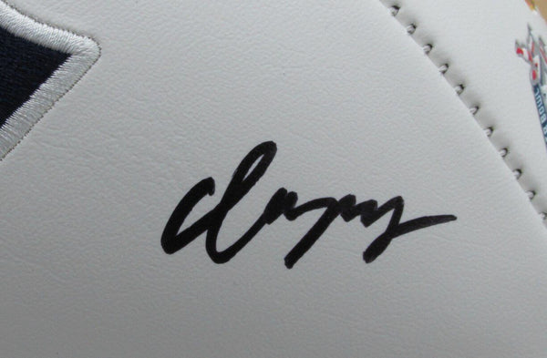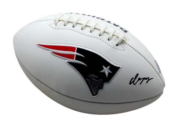 Christian gonzalez autographed new england patriots logo football. this football is authenticated by bas/beckett and includes their tamper-proof sticker.