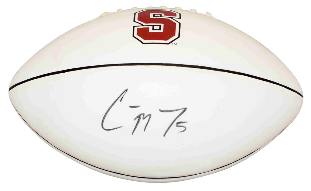 Christian McCaffrey, former All-American running back for the Cardinal, has hand signed this Stanford Nike white panel logo football at a private signing. This item comes with a certificate of authenticity (COA) from Beckett Authentication Services and was signed in the presence of one of their representatives. You will receive a serial-numbered COA along with a matching serial-numbered sticker on the ball. The authenticity can be verified online by entering the serial number.Item pictured may not be the exact item you will receive. It will be similar quality, and we guarantee your satisfaction.