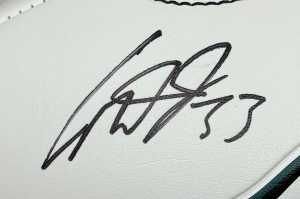 Featured is a Cooper Dejean signed Philadelphia Eagles logo football. This ball has been hand signed by Dejean and comes with the Fanatics hologram and certificate of authenticity. Included with this ball is a deluxe acrylic display case. This ball would make a great addition to any sports memorabilia collection!. SPECIFICATIONS Autographed By: Cooper Dejean Team: Philadelphia Eagles Sport: Football Authentication: Fanatics Authentic
