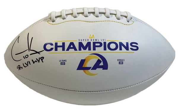 This Super Bowl LVI Champs commemorative white panel football has been personally hand-signed by Cooper Kupp with the added inscription "SB LVI MVP." It is officially licensed by the National Football League and comes with an individually numbered, tamper-evident hologram from Fanatics Authentic. To ensure authenticity, the hologram can be reviewed online. This process helps to ensure that the product purchased is authentic and eliminates any possibility of duplication or fraud.The autograph includes an official Fanatics hologram and matching COA for authenticity purposes.Comes with a tamper-evident hologram from Fanatics AuthenticatedOfficially licensed by the NFL MONEY BACK GUARANTEE! If for any reason you are not completely satisfied with the quality or authenticity of your purchase, we will gladly give you a full refund or exchange, whichever you prefer up to 30 days after purchase. Please feel free to e-mail us with any questions. Thank you. Authenticator Pre-Certified Authenticator: Fanatics Authenticated History of item: Cooper Kupp has signed this item in the presence of a representative from Fanatics. Describe how you came to possess this item: Super Sports Center is a fully authorized dealer for Upper Deck Authenticated as well as Mounted Memories and Steiner Sports. Other information about you and / or the item: Super Sports Center strives to deliver the most authentic in sports memorabilia from trusted companies like Mounted Memories, Steiner Sports and Upper Deck Authenticated. If it exists, we can find it for you!