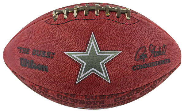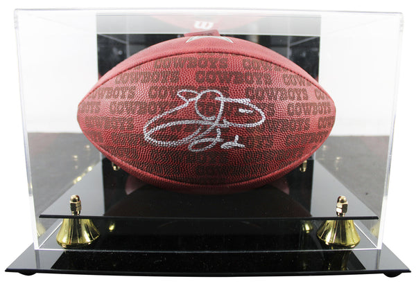 This Autographed Official Wilson "The Duke" Team Showcase Football W/ Uv Mirrored Back Acrylic Display Case has been Personally Signed by Emmitt Smith of the Dallas Cowboys. This item is 100% Authentic to include a hologram by Beckett Authentication Services. This item will come with an affixed Beckett Authentication Services (BAS) authentication sticker, which includes a scannable QR code to verify authenticity. Please note that Beckett no longer provides serial-numbered COA cards, and the attached BAS sticker will serve as the complete authentication for this item. This is a BAS Witnessed Protection Program item which means a Beckett Authentication Service representative was present when this item was being signed. We conducted an autograph signing with Emmitt Smith where multiples of the same item were signed. While the photographs are representative of this item, the size, placement and strength of the signature may vary. Each item is hand signed, therefore, each autograph is unique. This item can be verified through BAS Witnessed.