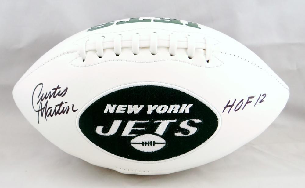 Curtis Martin Autographed New York Jets Logo Football w/ HOF- Beckett Auth This is a hand autographed Football of Curtis Martin of the New York Jets. This is a New York Jets Logo Football. This item has a Beckett Authentication, which comes with a Beckett numbered sticker and a matching Beckett Certificate of Authenticity. You can view this item on the Beckett Authentication website. It was signed either at a public autograph appearance or a private signing. This is a stock photo of the item. Although you may not receive this exact item, the item you receive is virtually identical and brand new in great shape.