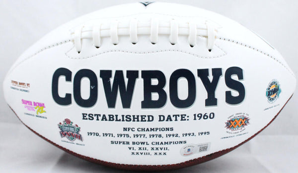 Deion Sanders Autographed Dallas Cowboys Logo Football w/HOF-Beckett W Hologram *Black This is a hand autographed Football of Deion Sanders of the Dallas Cowboys. Inscribed HOF. This is a Dallas Cowboys Logo Football. This item has a Beckett Witnessed Authentication, which comes with a Beckett numbered sticker hologram and a QR code for verification. You can view this item on the Beckett Authentication website, it shows when and where the item was signed. It was signed either at a public autograph appearance or a private signing. This is a stock photo of the item. Although you may not receive this exact item, the item you receive is virtually identical and brand new in great shape.