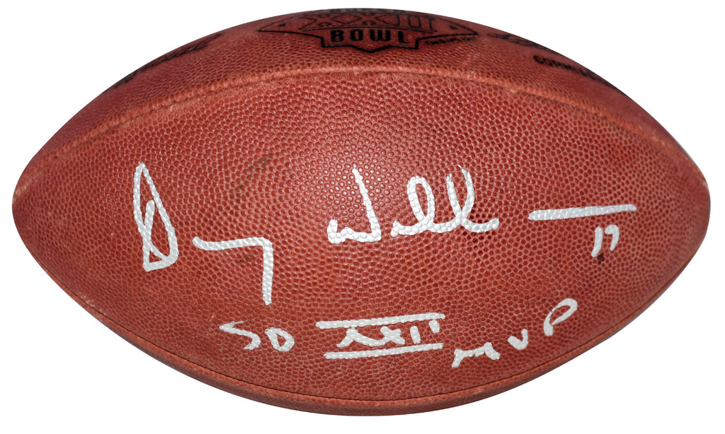 Doug Williams, former star quarterback for the Washington Redskins, has hand signed this official Wilson Super Bowl XXII game football at a private signing. He included the inscription "SB XXII MVP" with his signature. This item is authenticated by Beckett Authentication Services and was signed in the presence of one of their representatives. Their tamper-evident hologram featuring a QR code and serial number is on the item. The authenticity can be verified online by entering the serial number or scanning the QR code.Item pictured may not be the exact item you will receive. It will be similar quality, and we guarantee your satisfaction.