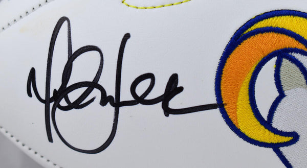 Eric Dickerson Marshall Faulk Autographed Rams Logo Football - Beckett W Hologram *Black This is a hand autograph of Eric Dickerson and Marshall Faulk on a Rams Logo Football. This item has a Beckett Witnessed Authentication, which comes with numbered hologram and a QR code for verification. You can view this item on the Beckett Authentication website, it shows when and where the item was signed. It was signed either at a public autograph appearance or a private signing. This is a stock photo of the item. Although you may not receive this exact item, the item you receive is virtually identical and brand new in great shape.