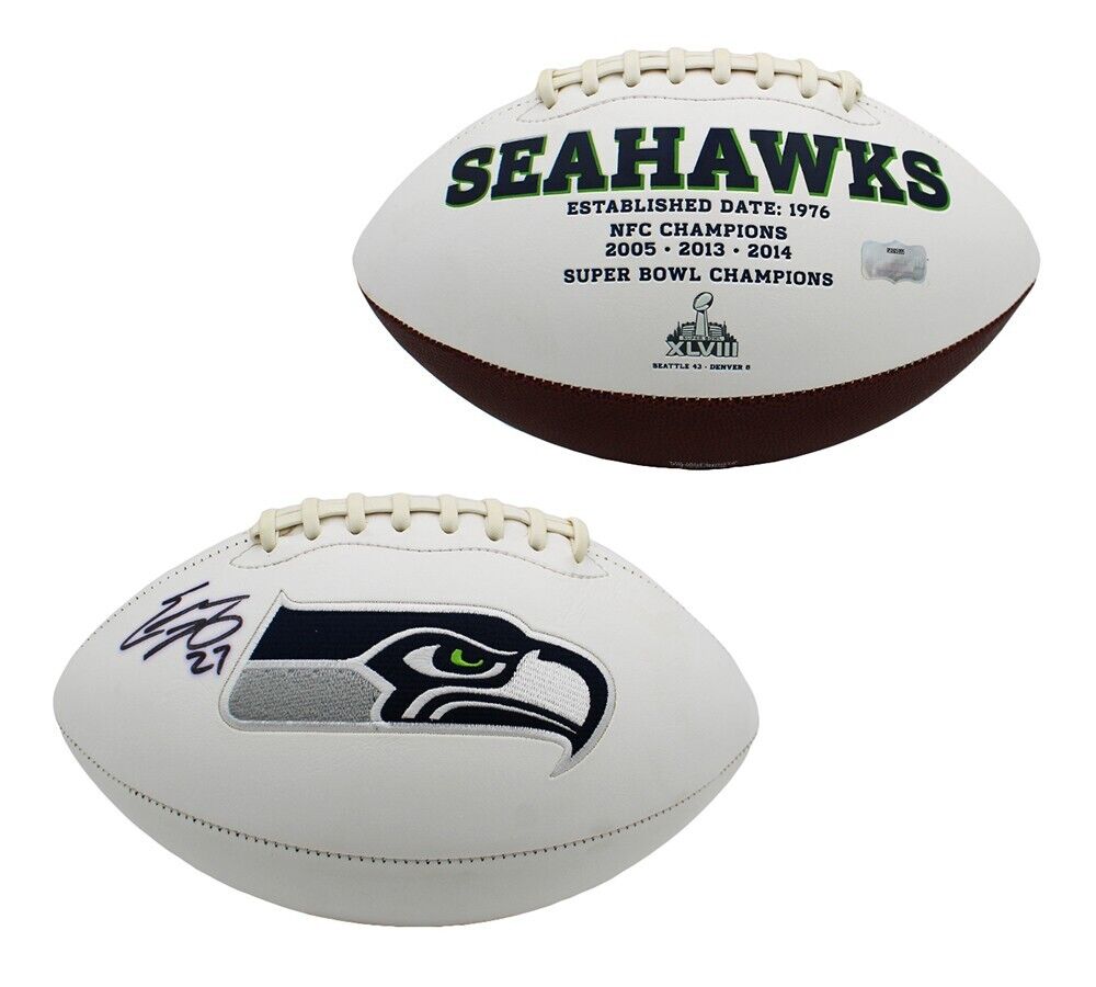 A Seattle Seahawks Embroidered NFL Football hand signed by Eddie Lacy. The item and signature are in excellent condition. Eddie ran over defenses in the SEC and is doing the same thing in the NFL! Get in on the hard-hitting action with this classic piece - AUTHENTICATION: The item is accompanied by a Certificate of Authenticity - Serial Numbered and Databased Hologram - Picture of Eddie from the Signing
