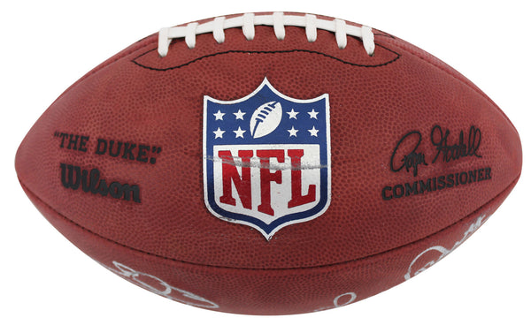 This Autographed Official Wilson "The Duke" Nfl Football with the inscription of "America's Team (Dorsett)" has been Personally Signed by Tony Dorsett & Emmitt Smith of the Dallas Cowboys. This item is 100% Authentic to include a hologram by Beckett Authentication Services. This item will come with the new Beckett Authentication hologram that has a scannable QR code rather than the traditional COA. If you would like to have a COA, you are welcome to reach out to Beckett for a printed certification once you receive your item. This is a BAS Witnessed Protection Program item which means a Beckett Authentication Service representative was present when this item was being signed. The authenticity can be verified on Beckett Authentication Services website.