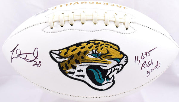 Fred Taylor Autographed Jacksonville Jaguars Logo Football w/11,698 Rushing Yards- Beckett W Hologram *Black This is a hand autographed Football of Fred Taylor of the Jacksonville Jaguars. This is a Logo Football. This item has a Beckett Witnessed Authentication, which comes with a Beckett numbered sticker hologram and a QR code for verification. You can view this item on the Beckett Authentication website, it shows when and where the item was signed. It was signed either at a public autograph appearance or a private signing. This is a stock photo of the item. Although you may not receive this exact item, the item you receive is virtually identical and brand new in great shape.