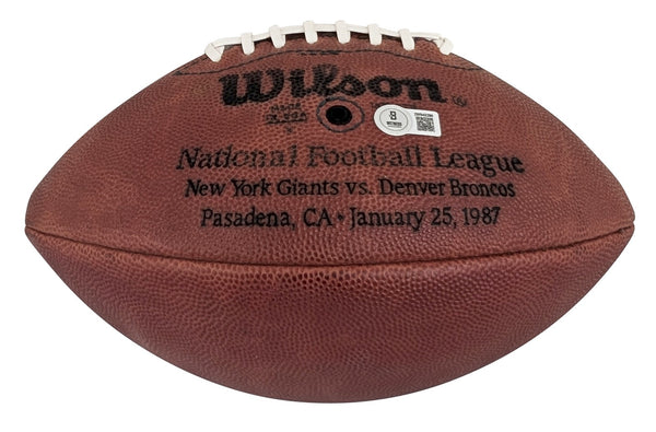 This Autographed Super Bowl XXI Logo Official Wilson "The Duke" Football W/ Uv Mirrored Back Acrylic Display Case with the inscription of "SB XXI MVP" has been Personally Signed by Phil Simms of the New York Giants. This item is 100% Authentic to include a hologram by Beckett Authentication Services. This item will come with an affixed Beckett Authentication Services (BAS) authentication sticker, which includes a scannable QR code to verify authenticity. Please note that Beckett no longer provides serial-numbered COA cards, and the attached BAS sticker will serve as the complete authentication for this item. This is a BAS Witnessed Protection Program item which means a Beckett Authentication Service representative was present when this item was being signed. We conducted an autograph signing with Phil Simms where multiples of the same item were signed. While the photographs are representative of this item, the size, placement and strength of the signature may vary. Each item is hand signed, therefore, each autograph is unique. This item can be verified through BAS Witnessed.