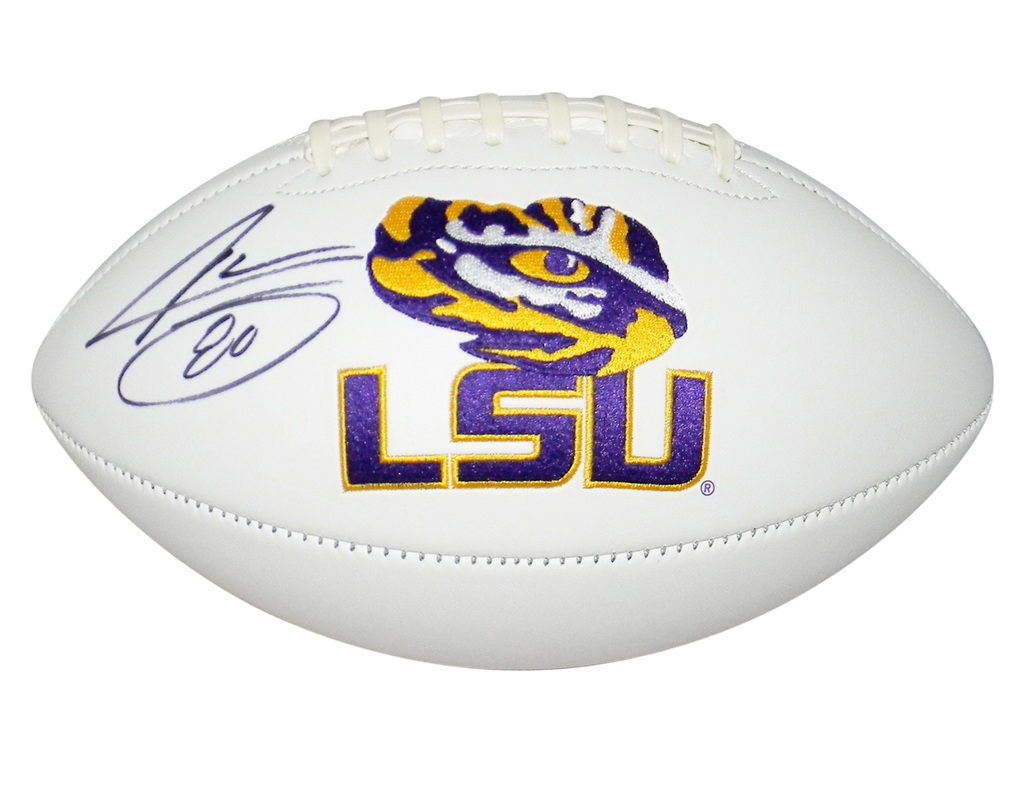 Jarvis Landry, former All-American wide receiver for the Tigers, has hand signed this LSU white panel logo football at a private signing. This item comes with a certificate of authenticity (COA) from JSA - James Spence Authentication and was signed in the presence of one of their representatives. You will receive a serial-numbered COA along with a matching serial-numbered sticker on the ball. The authenticity can be verified online by entering the serial number.Item pictured may not be the exact item you will receive. It will be similar quality, and we guarantee your satisfaction.