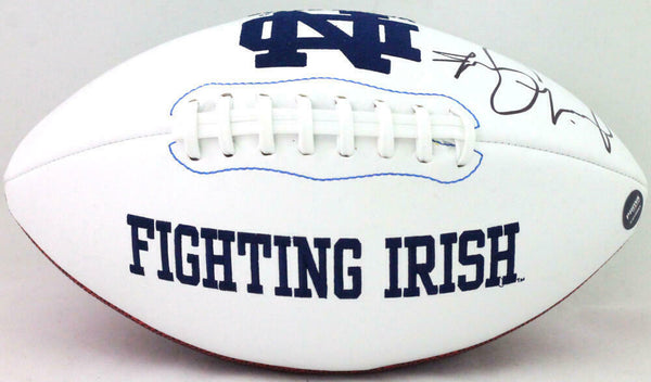Jeremiah Owusu-Koramoah Autographed Notre Dame Logo Football w/ Insc- Prova This is a Jeremiah Owusu-Koramoah of Notre Dame Fighting Irish hand autographed logo football inscribed with "Play Like a Champion Today". This item has a Prova Authentication, which comes with a numbered sticker and a matching Prova Certificate of Authenticity. You can view this item on the Prova Authentication website and it shows when and where the item was signed. It was signed either at a public autograph appearance or a private signing. This is a stock photo of the item. Although you may not receive this exact item, the item you receive is virtually identical, brand new, and in great shape.