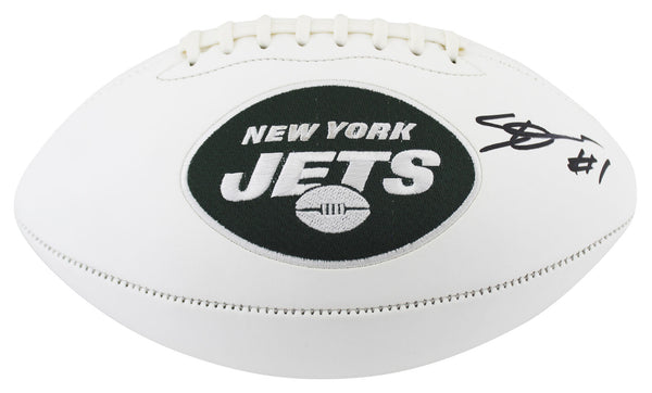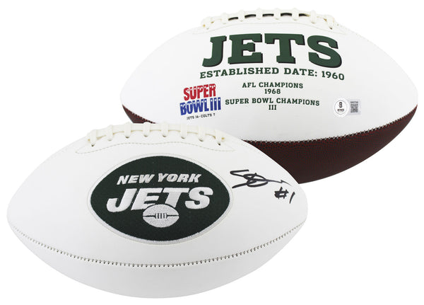 This Autographed Rawlings White Panel Logo Football has been Personally Signed by Ahmad "Sauce" Gardner of the New York Jets. This item is 100% Authentic to include a hologram by Beckett Authentication Services. This item will come with an affixed Beckett Authentication Services (BAS) authentication sticker, which includes a scannable QR code to verify authenticity. Please note that Beckett no longer provides serial-numbered COA cards, and the attached BAS sticker will serve as the complete authentication for this item. This is a BAS Witnessed Protection Program item which means a Beckett Authentication Service representative was present when this item was being signed. We conducted an autograph signing with Ahmad "Sauce" Gardner where multiples of the same item were signed. While the photographs are representative of this item, the size, placement and strength of the signature may vary. Each item is hand signed, therefore, each autograph is unique. This item can be verified through BAS Witnessed.