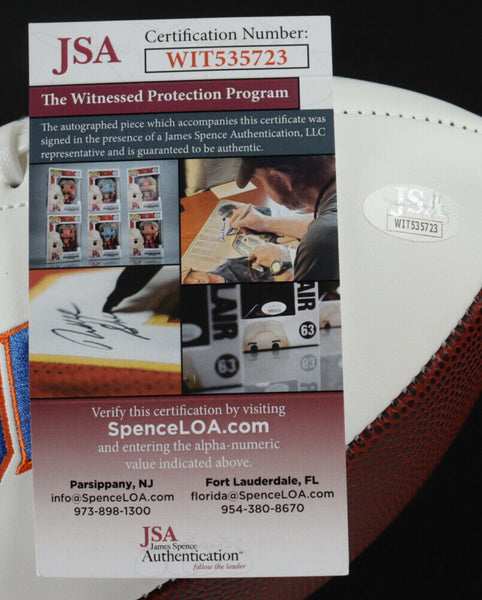 Florida Gators Logo Football has been hand-signed by Jevon Kearse . Please note, the ball shows signs of slight wear.The lot / autograph(s) includes an official James Spence Authentication (JSA) hologram and matching COA for authenticity purposes. The signing of this item was witnessed by JSA.Authentication: JSA COA