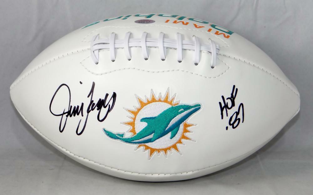 Jim Langer Autographed Miami Dolphins Logo Football W/ HOF- SGC Authenticated This is a Hand Autographed Football of Jim Langer. This is a Miami Dolphins Logo Football. This item has a Sportscard Guaranty Authentication, which Comes with a SGC #'ed Sticker and a Matching SGC COA. You can view this item on the SGC website and it shows when and where the item was signed. It was signed either at a public autograph appearance or a Private Signing. This is a stock photo of the item. Although you may not receive this exact item, the item you receive is virtually identical and brand new in great shape.