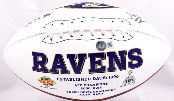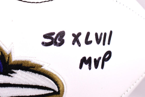 Joe Flacco Autographed Baltimore Ravens Logo Football w/SB MVP-Beckett W Holo