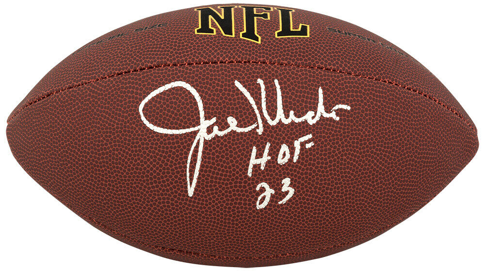 Joe Klecko signed Wilson Super Grip full size NFL football with 'HOF 23' inscription. Item comes with a Schwartz Sports Memorabilia tamper-proof numbered hologram and Certificate of Authenticity which can be verified online.