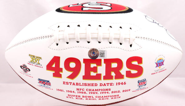 Joe Montana Autographed San Francisco 49ers Logo Football - Beckett Hologram *Black This is a Hand Autographed Football of Joe Montana. This is a San Francisco 49ers Logo Football. This item has a Beckett Authentication, which Comes with a Beckett #'ed Sticker Hologram and a QR code for verification. You can view this item on the Beckett website, it shows when and where the item was signed. It was signed either at a public autograph appearance or a Private Signing. This is a stock photo of the item. Although you may not receive this exact item, the item you receive is virtually identical and brand new in great shape.
