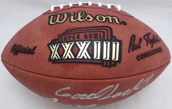 This is a SB XXXIII Logo NFL Leather Football that has been hand signed by Joe Namath. This item was inscribed "Good Luck". This item has been certified authentic by Beckett Authentication (BAS) and comes with their tamper-proof sticker. Beckett Authentication has recently changed their physical certificate card policy where they no longer match their tamper-proof sticker with a physical certificate. If the item features a Beckett Authenticated QR Code, the item does NOT come with a matching certificate. The tamper-proof sticker holds the value in the authentication process while the certificate does not. A certificate can be printed on Beckett's website for the matching authentication number.