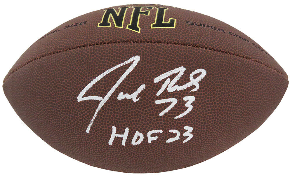 Joe Thomas signed Wilson Super Grip full size NFL football with 'HOF 23' inscription. Item comes with a Schwartz Sports Memorabilia tamper-proof numbered hologram and Certificate of Authenticity which can be verified online.