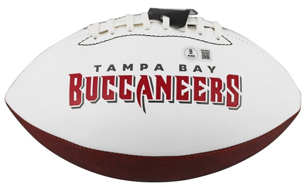 This autographed football has been personally hand-signed by John Lynch of the Tampa Bay Buccaneers.This autograph is certified by Beckett Authentication Services (BAS) Witness Certification. That means that a Beckett representative was present when this item was signed. It comes with the numbered authentication hologram and QR Code card which verifies the authenticity at Beckett's website.