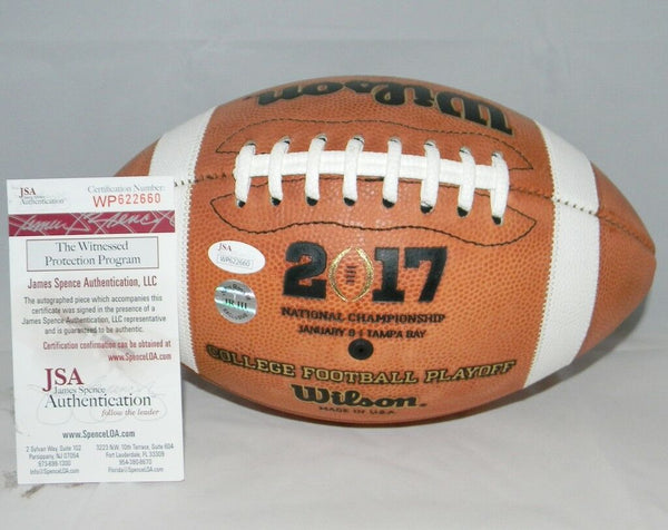 John Ross, former All-American wide receiver for the Huskies, has hand signed this official Wilson NCAA College Football Playoff football with the Washington logo branded on it. This item comes with a certificate of authenticity (COA) from JSA - James Spence Authentication and was signed in the presence of one of their representatives. You will receive a serial-numbered COA along with a matching serial-numbered sticker on the ball. The authenticity can be verified online by entering the serial number.Item pictured may not be the exact item you will receive. It will be similar quality, and we guarantee your satisfaction.
