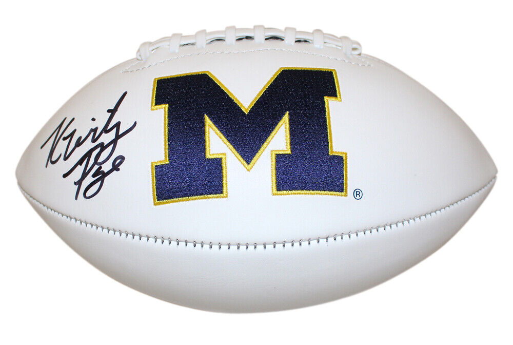 Kwity Paye Autographed Michigan Wolverines Logo Football Beckett 38938 The number in the listing title is just an inventory sku for our records and is not the authentication number. The item pictured is a stock photo unless otherwise noted. This is a Michigan Wolverines logo football that was personally autographed by Kwity Paye. Includes a certificate of authenticity from Beckett Authentication Services (BAS) and Denver Autographs.