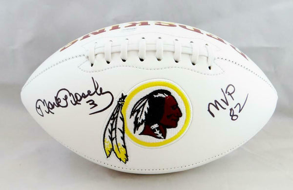 Mark Moseley Autographed Washington Redskins Logo Football w/ 82 MVP- JSA W Auth This is a hand autographed Football of Mark Moseley of the Washington Redskins. It has been inscribed 82 MVP. This is a Washington Redskins Logo Football. This item has a James Spence Witness Protection Authentication, which comes with a JSA numbered sticker and matching Certificate of Authenticity. You can view this item on the SpenceLOA website, it shows when and where the item was signed. It was signed either at a public autograph appearance or a private signing. This is a stock photo of the item. Although you may not receive this exact item, the item you receive is virtually identical and brand new in great shape.