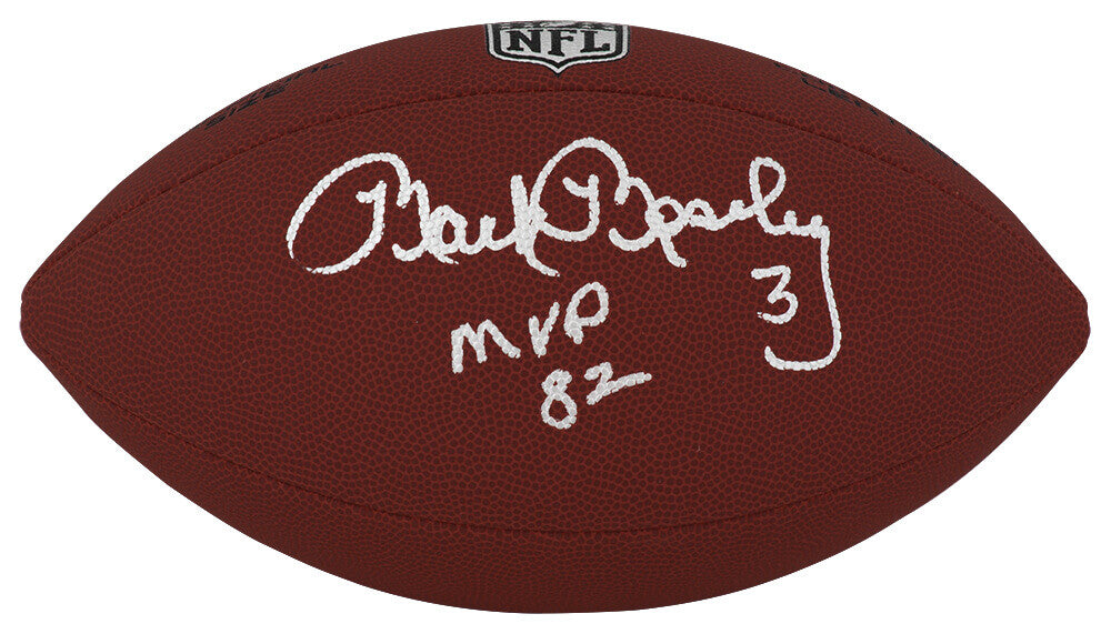 Mark Moseley signed Wilson Limited full size NFL football with 'MVP 82' inscription. Item comes with a Schwartz Sports Memorabilia tamper-proof numbered hologram and Certificate of Authenticity which can be verified online.