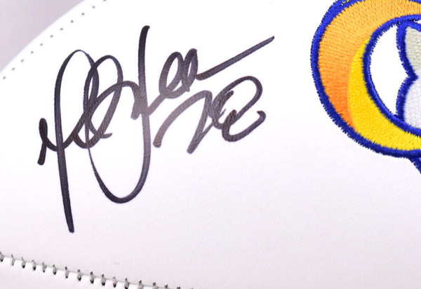 Marshall Faulk Autographed Rams Logo Football- Beckett W Hologram *Black This is a hand autographs of Marshall Faulk on a Rams Logo Football. This item has a Beckett Witnessed Authentication, which comes with numbered hologram and a QR code for verification. You can view this item on the Beckett Authentication website, it shows when and where the item was signed. It was signed either at a public autograph appearance or a private signing. This is a stock photo of the item. Although you may not receive this exact item, the item you receive is virtually identical and brand new in great shape.