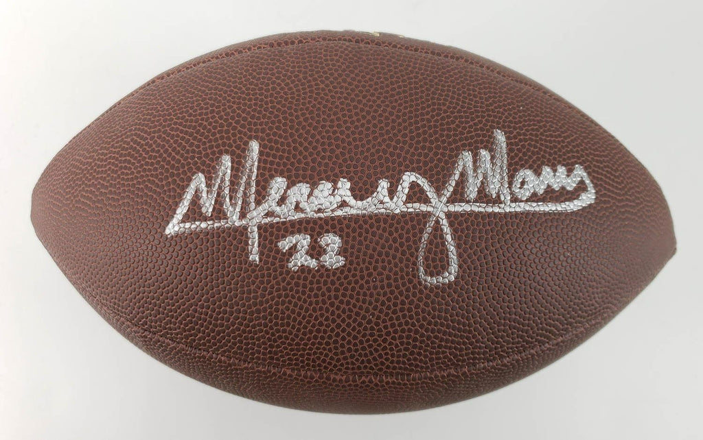 This autographed football has been personally hand-signed by Mercury Morris of the Miami Dolphins.This autograph is certified by Beckett Authentication Services (BAS) Witness Certification. That means that a Beckett representative was present when this item was signed. It comes with the numbered authentication hologram with a QR code that verifies the authentication on the Beckett website.