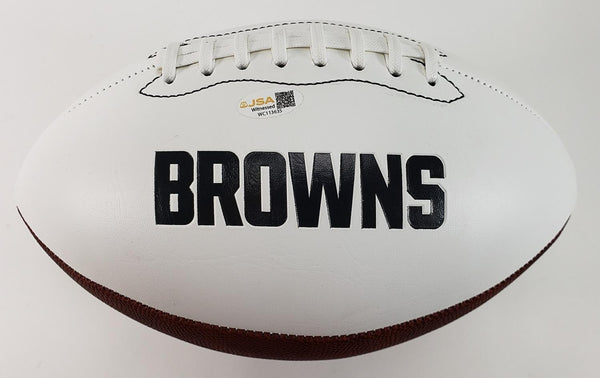 This autographed football has been personally hand-signed by Michael Dean Perry & Greg Pruitt of the Cleveland Browns.This autograph is certified by James Spence Authentication's (JSA) Witnessed Protection Program. That means that a JSA representative was present when this item was signed. It comes with the numbered authentication scannable hologram with a QR code that verifies the authentication on the JSA website.