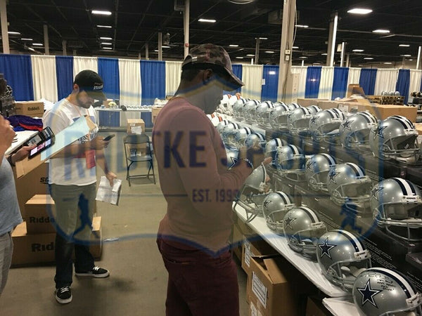 A DALLAS COWBOYS RIDDELL FULL SIZE REPLICA NFL HELMET HAND SIGNED BY THE PLAYMAKER MICHAEL IRVIN. THE ITEM AND SIGNATURE ARE IN EXCELLENT CONDITION. IN ADDITION TO SIGNING HIS NAME MICHAEL ALSO INSCRIBED PLAYMAKER ON THE ITEM IN BETWEEN HIS FIRST AND LAST NAME. DON'T MISS OUT ON THIS EXCELLENT PIECE FROM THE PLAYMAKER HIMSELF. THIS IS A MUST HAVE FOR ANY FOOTBALL FAN! AUTHENTICATION: THE ITEM IS ACCOMPANIED BY A CERTIFICATE OF AUTHENTICITY SERIAL NUMBERED AND DATABASED HOLOGRAM AND PICTURE OF MICHAEL FROM THE SIGNING. uses professional lighting for our product images that may show reflections. We also feature watermarks on our proof pictures. The picture you receive will NOT have a watermark