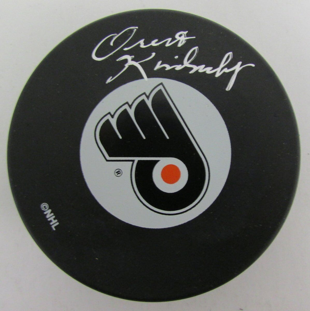 Orest Kindrachuk Philadelphia Flyers Autographed/Signed Flyers Logo Puck 140401