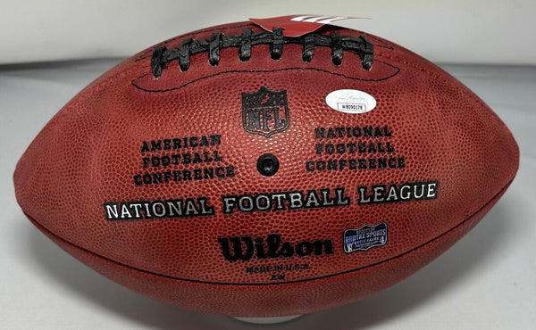 Wilson Authentic Duke Green Bay Packers Logo Football hand signed by Green Bay Packers Hall of Fame Quarterback BRETT FAVRE. The signature is in Silver Paint Pen. This item would make a great addition to any Packers collection! This item is guaranteed to be 100% authentic and will include a COA from JSA authentication.
