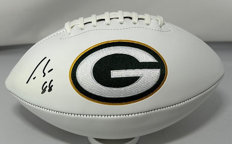 Wilson full size White Panel Packers Logo Football hand signed by Green Bay Packers Tight End LUKE MUSGRAVE. The signature is in Black paint pen. This item was signed at a private signing with us and would make a great addition to any Packers collection! This autograph is guaranteed to be 100% authentic and will include a COA hologram from Fanatics authentication.