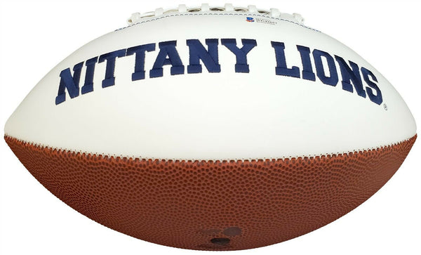 This is a Penn State Nittany Lions White Logo Football that has been hand signed by Pat Freiermuth. This item has been certified authentic by Beckett Authentication (BAS) and comes with their tamper-proof sticker and matching certificate of authenticity.