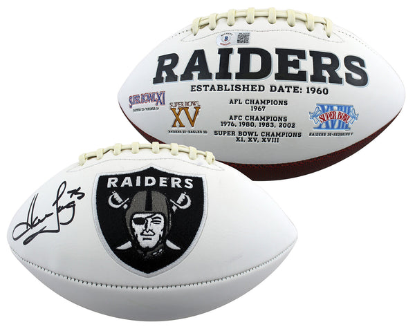 This Autographed White Panel Logo Football has been Personally Signed by Howie Long of the Oakland Raiders. This item is 100% Authentic to include a hologram by Beckett Authentication Services. This item will come with the new Beckett Authentication hologram that has a scannable QR code rather than the traditional COA. If you would like to have a COA, you are welcome to reach out to Beckett for a printed certification once you receive your item. This is a BAS Witnessed Protection Program item which means a Beckett Authentication Service representative was present when this item was being signed. We conducted an autograph signing with Howie Long where multiples of the same item were signed. While the photographs are representative of this item, the size, placement and strength of the signature may vary. Each item is hand signed, therefore, each autograph is unique. This item can be verified through BAS Witnessed.
