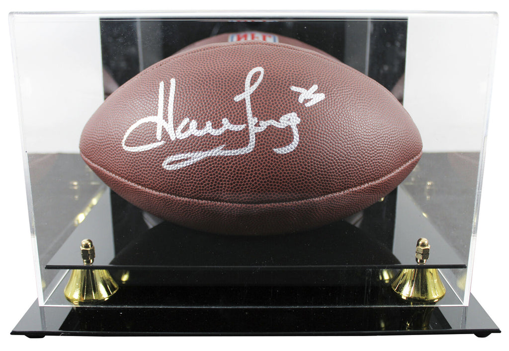 This Autographed Wilson Replica Duke Football W/ Uv Mirrored Back Acrylic Display Case has been Personally Signed by Howie Long of the Oakland Raiders. This item is 100% Authentic to include a hologram by Beckett Authentication Services. This item will come with an affixed Beckett Authentication Services (BAS) authentication sticker, which includes a scannable QR code to verify authenticity. Please note that Beckett no longer provides serial-numbered COA cards, and the attached BAS sticker will serve as the complete authentication for this item. This is a BAS Witnessed Protection Program item which means a Beckett Authentication Service representative was present when this item was being signed. We conducted an autograph signing with Howie Long where multiples of the same item were signed. While the photographs are representative of this item, the size, placement and strength of the signature may vary. Each item is hand signed, therefore, each autograph is unique. This item can be verified through BAS Witnessed.