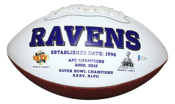 Ray Lewis Autographed/Signed Baltimore Ravens Logo Football BAS 28325 The number in the listing title is just an inventory sku for our records and is not the authentication number. This is a Baltimore Ravens white logo football that was personally autographed by Ray Lewis. Includes a certificate of authenticity from Beckett Authentication Services (BAS) and Denver Autographs.