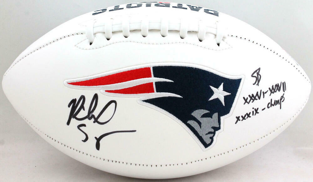 Richard Seymour Signed Patriots Rawlings Logo Football w/ Insc- Beckett W *Black This is a Richard Seymour of the New England Patriots hand autographed Rawlings logo football. This item has a Beckett Witnessed Authentication, which comes with a numbered and matching Beckett Certificate of Authenticity. You can view this item on the Beckett website, it shows when and where the item was signed. It was signed either at a public autograph appearance or a private signing. This is a stock photo of the item. Although you may not receive this exact item, the item you receive is virtually identical, brand new, and in great shape.