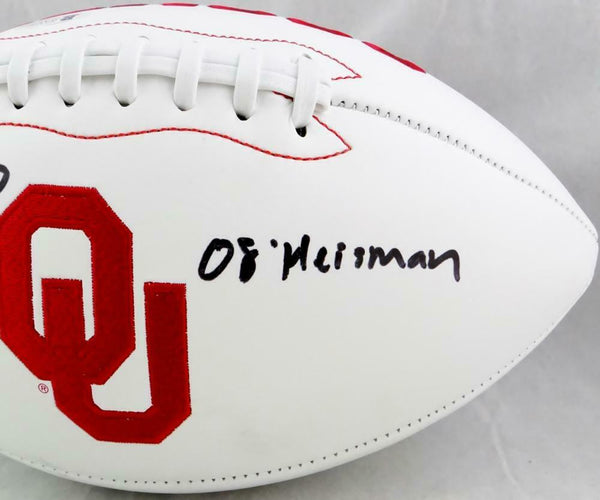 Sam Bradford Autographed Oklahoma Sooners Logo Football w/ HT - Beckett Auth This is a hand autograph of Sam Bradford of the Oklahoma Sooners on a Logo Football. This item has a Beckett Authentication, which comes with a numbered and a matching Beckett Certificate of Authenticity. You can view this item on the Beckett Authentication website. It was signed either at a public autograph appearance or a private signing. This is a stock photo of the item. Although you may not receive this exact item, the item you receive is virtually identical and brand new in great shape.
